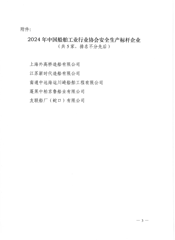 关于表彰2024年中国船舶工业行业协会安全生产标杆企业的决定