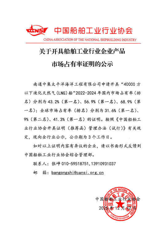 关于开具船舶工业行业企业产品市场占有率证明的公示