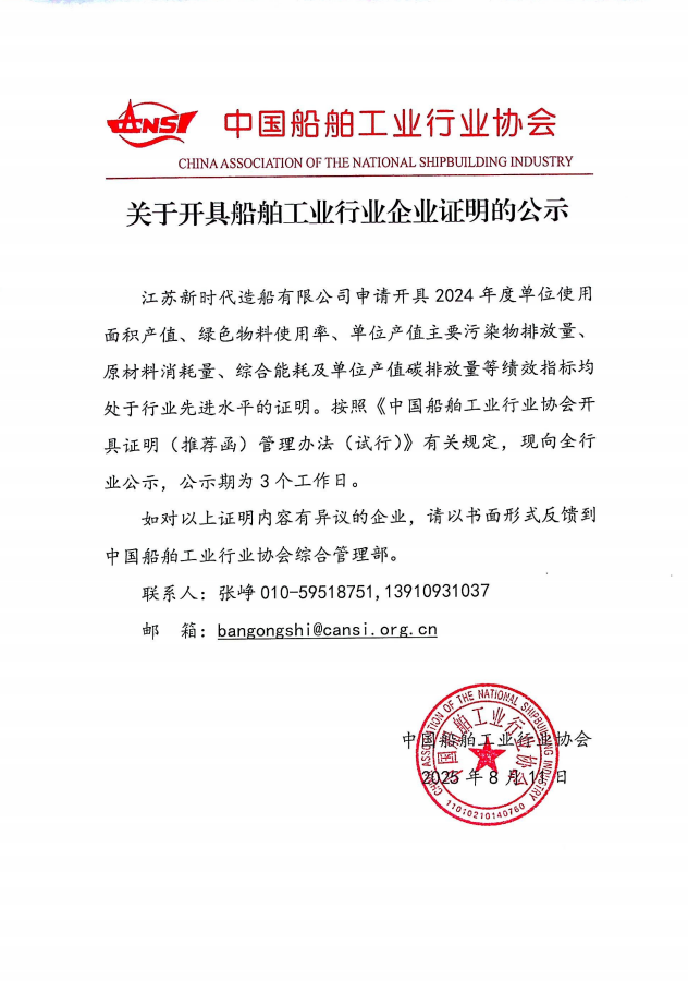 关于开具船舶工业行业企业证明的公示