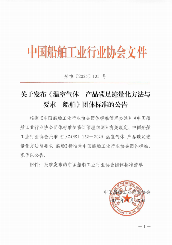 关于发布《温室气体产品碳足迹量化方法与要求 船舶》团体标准的公告