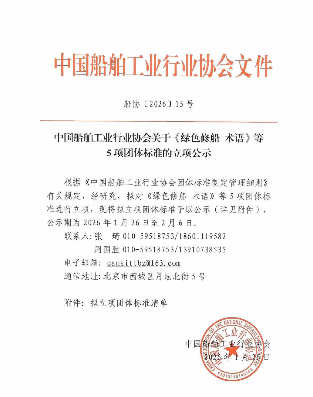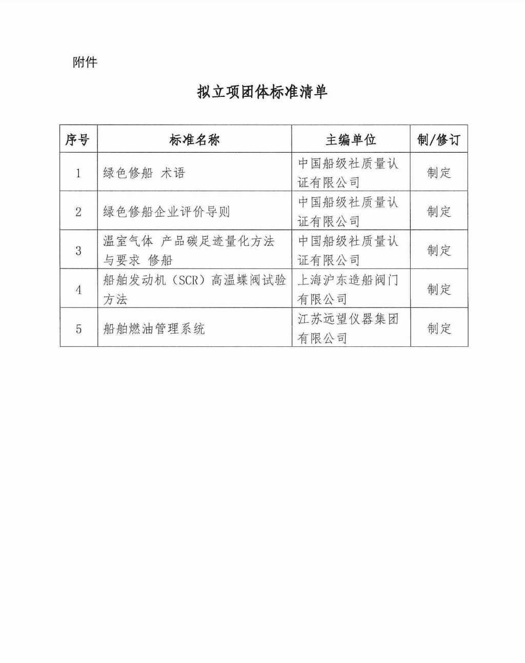 中国船舶工业行业协会关于《绿色修船 术语》等5项团体标准的立项公示